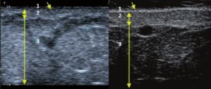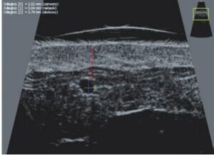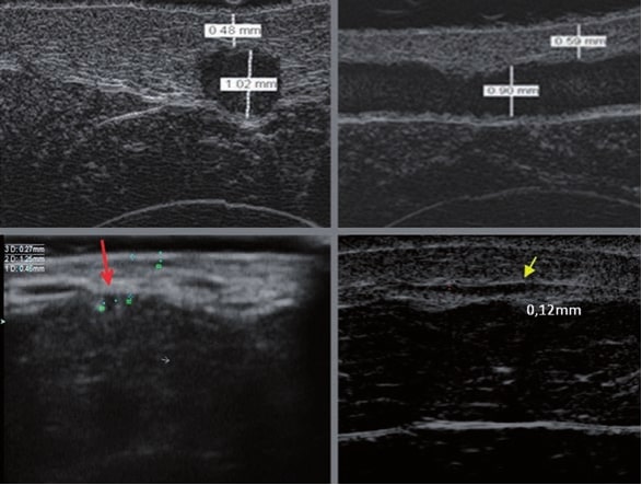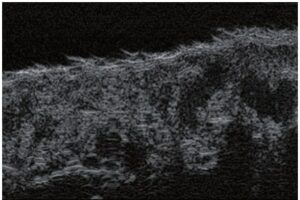 Aux fins de cet article, les images échographiques ont été obtenues au moyen d’équipements haute fréquence, c’est-à-dire Episcan avec un transducteur mécanique de 50 MHz (Longport International, Grande-Bretagne, États-Unis), DermaMed avec un transducteur mécanique de 48 MHz (Dramiński, Pologne) et Sonix avec un transducteur à réseau linéaire électronique d’une fréquence de 40 MHz (Ultrasonix, Canada).