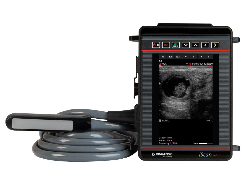 - Échographe iScan mini avec une sonde linéaire rectale ou une sonde convexe rectale
