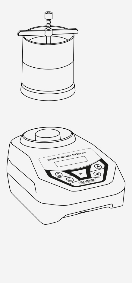 Vous pouvez effectuer la mesure du grain entier à l’aide de la méthode poids-volume en versant l’échantillon dans l’appareil. La balance intégrée augmente la précision de la mesure. L’erreur de mesure pour le grain standardisé ne dépasse pas 0,5 %. Un écran LCD alphanumérique affiche le nom complet du grain, l’humidité en % et sa température.