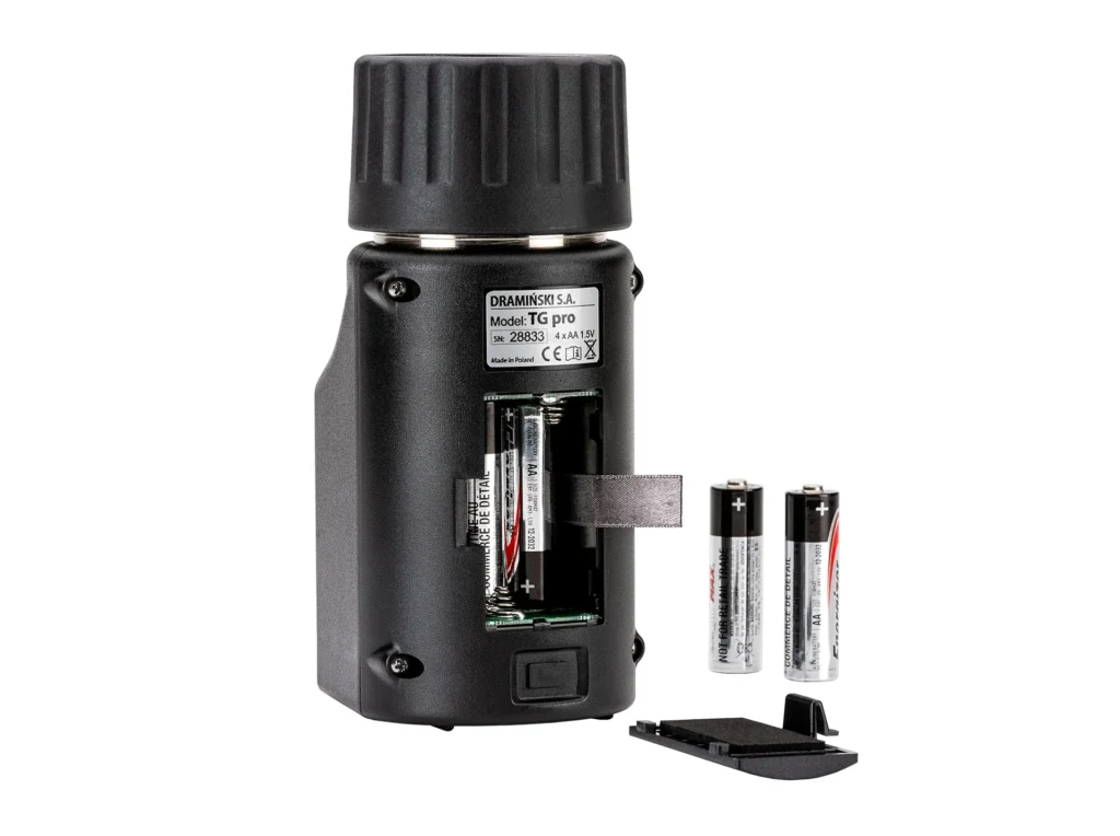 Lors du vissage du bouchon, un signal acoustique indiquera que l’échantillon de grain est suffisamment compressé. Comme il est confortable de tenir l’appareil dans ses mains (serrer le bouchon ne demande pas beaucoup de force), ce n’est pas fatigant même après de nombreuses mesures.